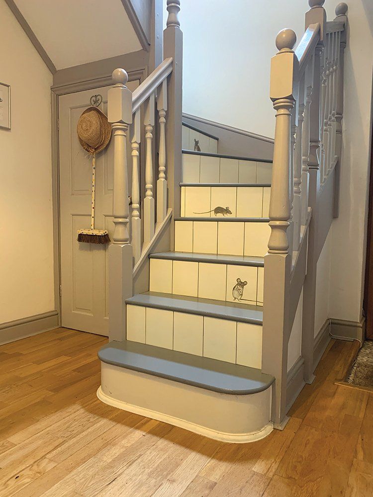 The risers you see on these staircases have been drawn directly onto hand crafted, painted wooden tiles and then varnished for protection.